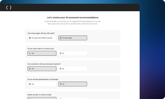 Diga ao AI Assistant do WordPress o que pretende alcançar com o seu site: vender serviços ou produtos, promover eventos, anunciar um negócio físico, direcionar tráfego para o seu site, receber chamadas telefónicas, etc. Selecione as opções desejadas e o AI Assistant adicionará essas funcionalidades ao seu site.