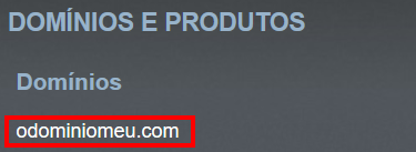 Na coluna da direita, na seção Domínios em Produtos, clique no domínio para o qual deseja ativar o email. Se, por exemplo, deseja criar uma conta com o nome info@odominiomeu, clique em odominiomeu.com.