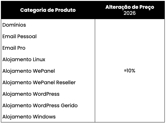 Os clientes não necessitam de realizar qualquer ação para esta atualização, os novos preços serão automaticamente aplicados às renovações futuras, conforme o serviço e o ciclo de faturação de cada conta.
